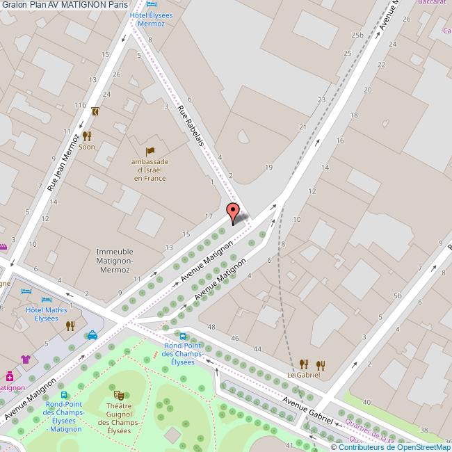 Le 2 avenue Matignon, 75008 Paris est construit sur une parcelle d'une surface au sol de 561 mètres carrés. Section cadastrale. N° de parcelle. Superficie. 000BJ01. 0057. 561 m². Le 2 avenue Matignon est à 282 mètres de la station "Champs-Elysées-Clémenceau".
