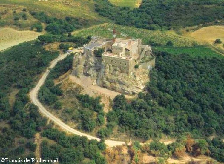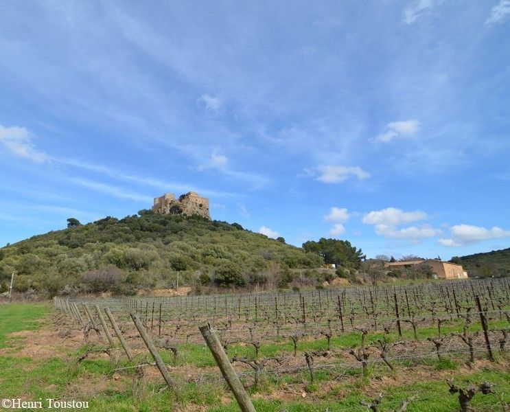 The Château de Saint-Martin de Toques is a partly ruined, mountaintop castle in the Bizanet commune in the Aude département of southern France. See also. Gaussan Priory; Château de Gaussan; Fontfroide Abbey; Pech Maho; Construction of the castle dates to the 12th and 14th centuries. It was later owned by the Viscounts of Narbonne.