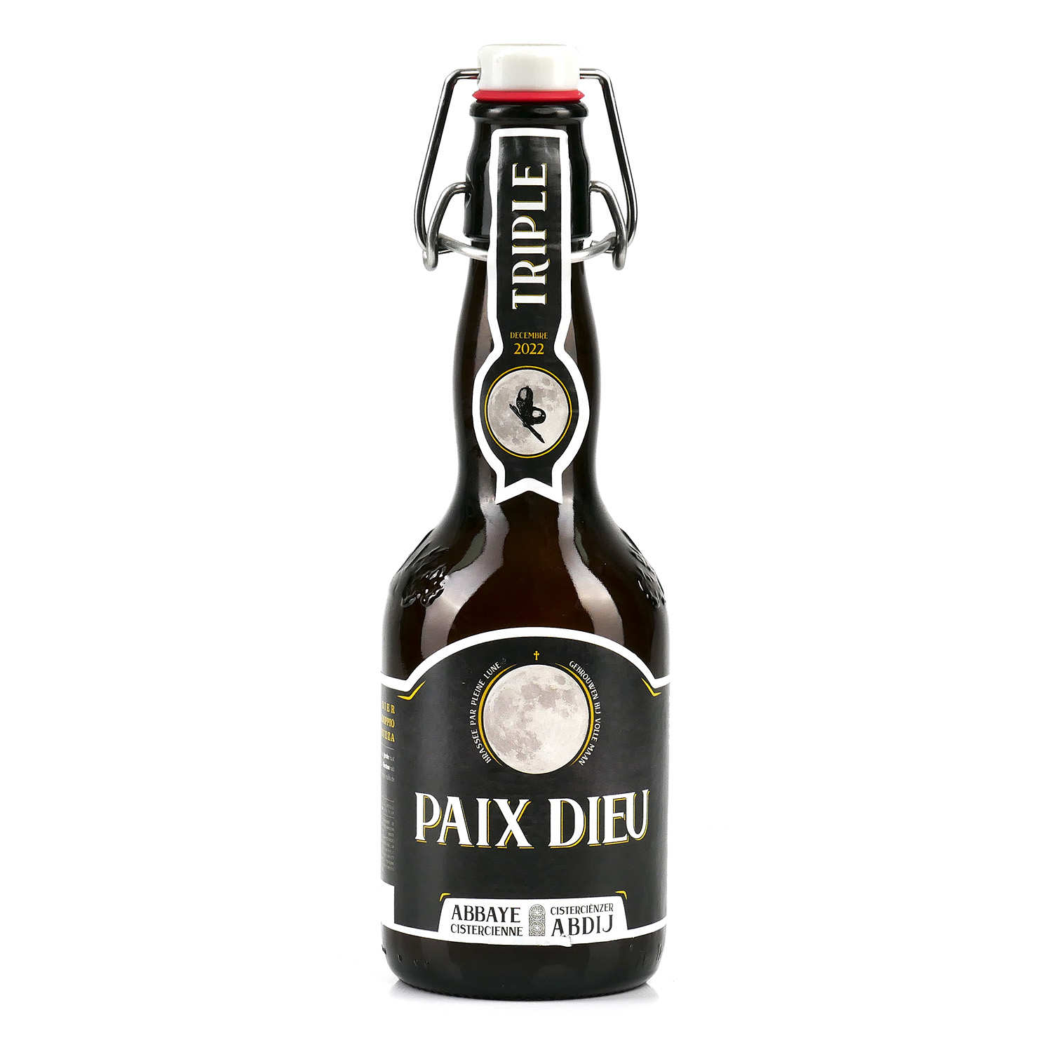 Paix Dieu Triple 75cl. La bière triple brassée uniquement les nuits de pleine lune • Une triple 100% onctueuse et pleine de caractère dans la plus pure tradition des bières belges d'abbaye • Respect de la tradition brassicole mise en place par l'abbaye Paix Dieu • Chaque brassin fait l'objet d'un marquage différent sur la bouteille.