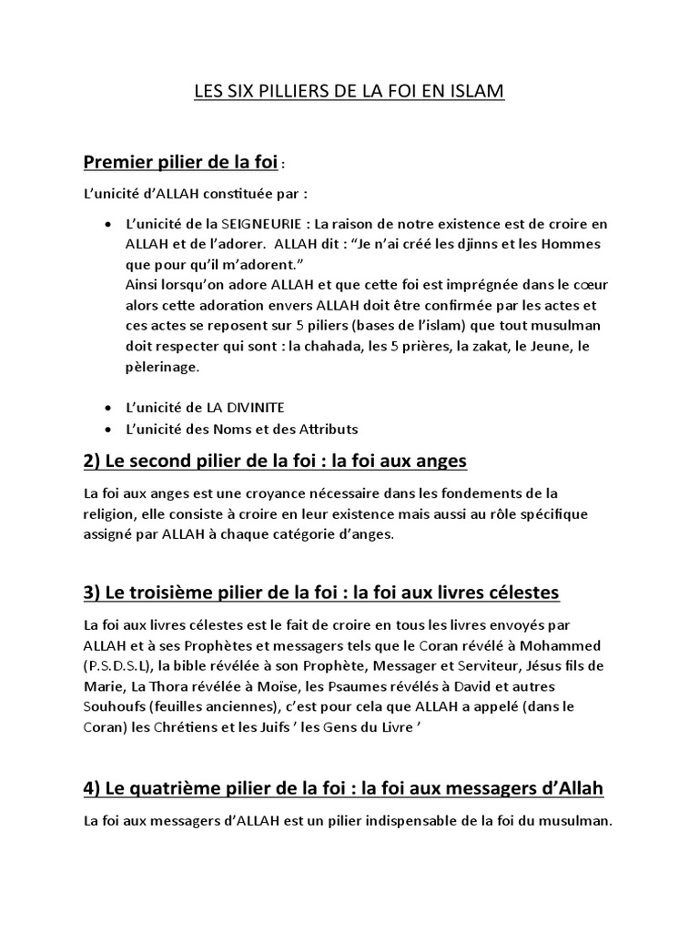 Les Six Pilliers de La Foi en Islam PDF Allah Mahomet