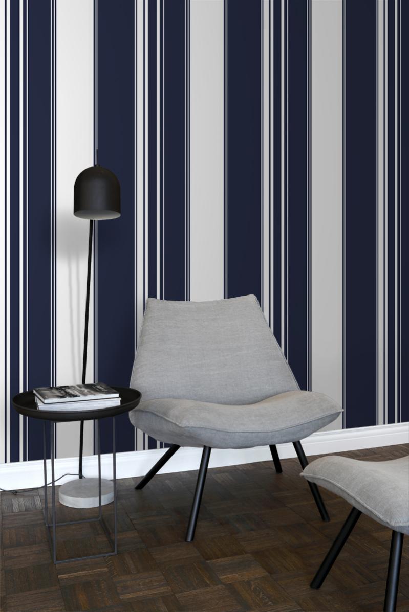 Papier peint Lutèce Jeux de Rayures 2 Rayure Bleu marine et blanc G67550