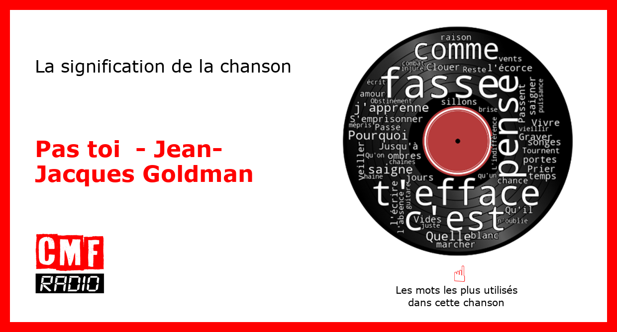 About Pas toi. "Pas toi" is a 1985 song recorded by French singer-songwriter and composer Jean-Jacques Goldman. It was the third and last single of his fourth studio album Non homologué and was released in April 1986. Fully composed by Goldman, it was successful in France.