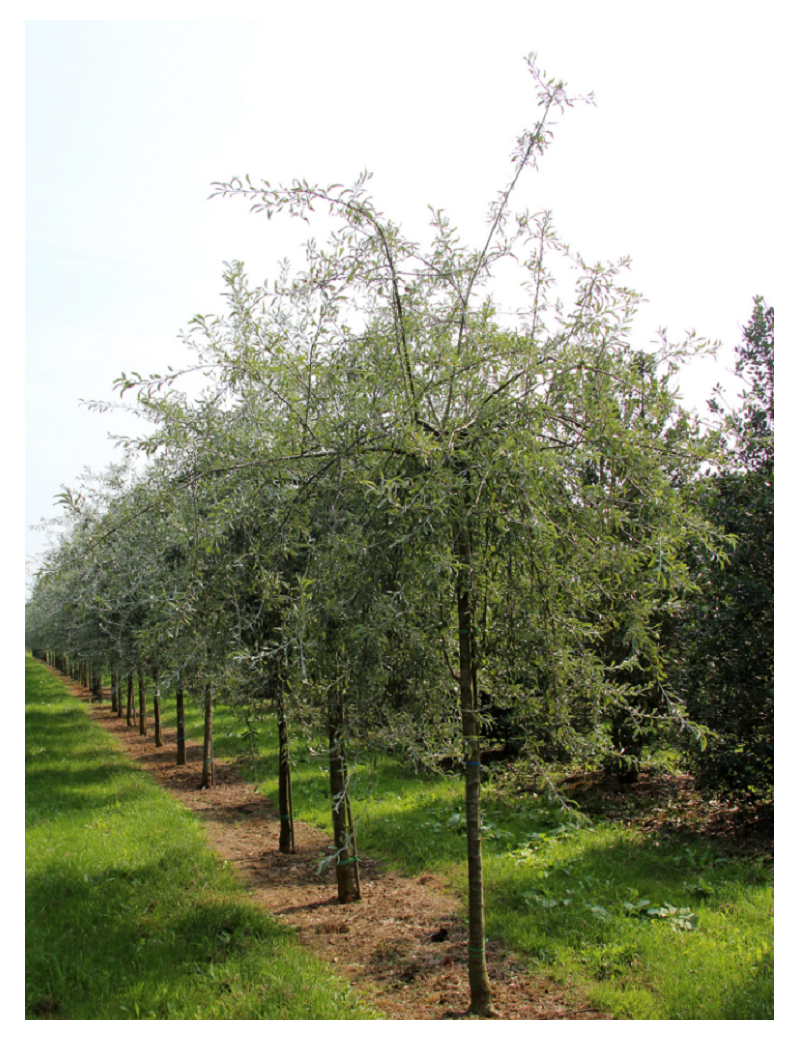 Poirier pleureur à feuilles de saule, Pyrus salicifolia pendula. C'est incroyable de voir à quel point ce petit arbre pleureur, lorsqu'il dispose de ses feuilles, ressemble à un olivier. Beaucoup de jardiniers se laissent d'ailleurs prendre ! Comme l'olivier, ce petit poirier se couvre en effet de feuilles étroites, allongées et.