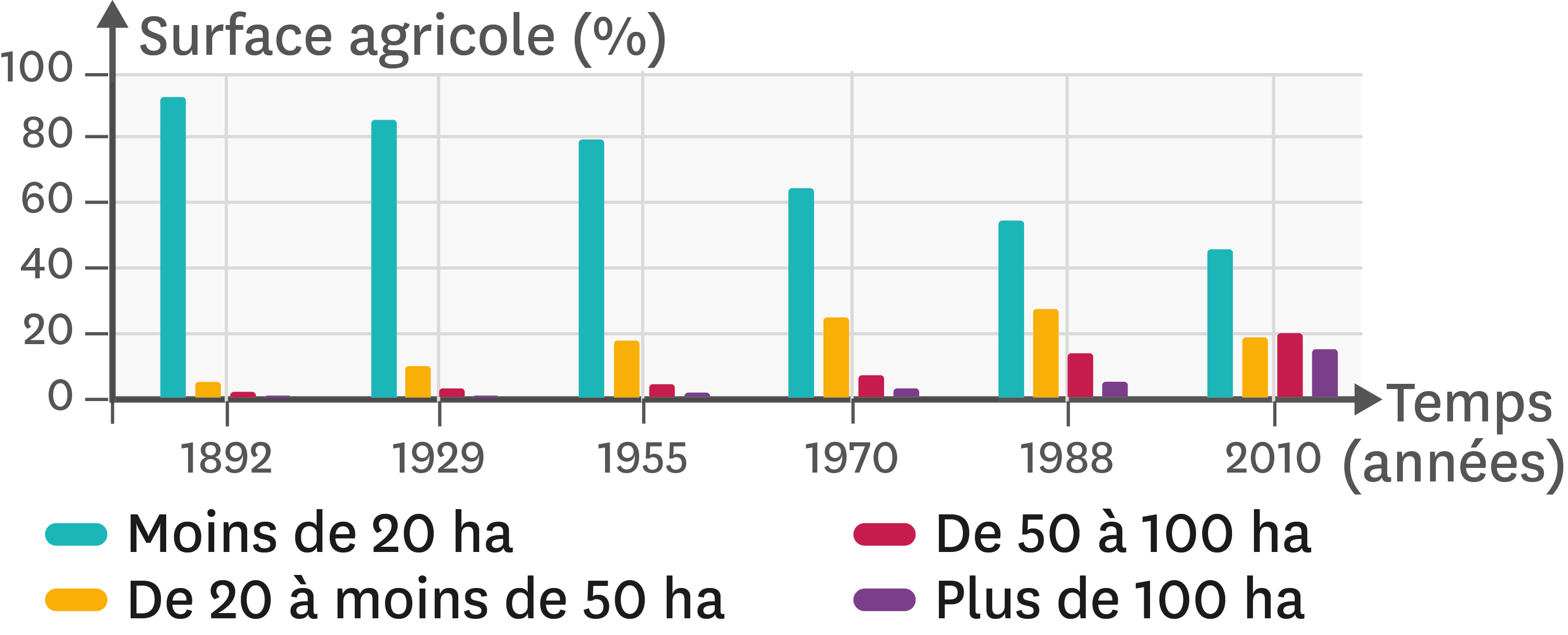 L’évolution de la surface des parcelles agricoles depuis 1892.