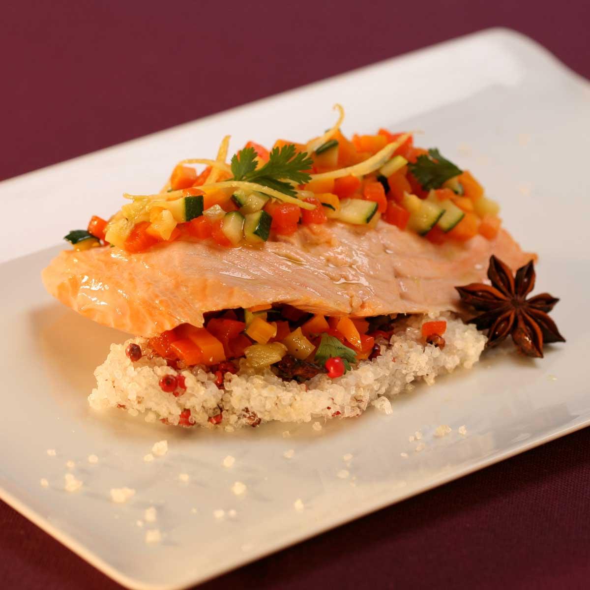 Recette saumon en croûte de sel anisé et ses légumes au citron confit Cuisine / Madame Figaro