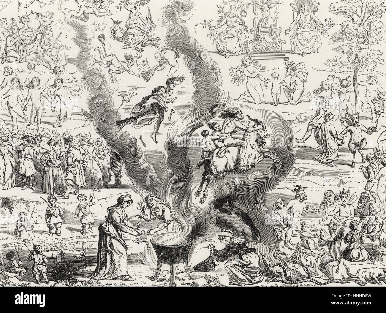 19th century engraving of a witches sabbath Stock Image N820/0056 Science Photo Library